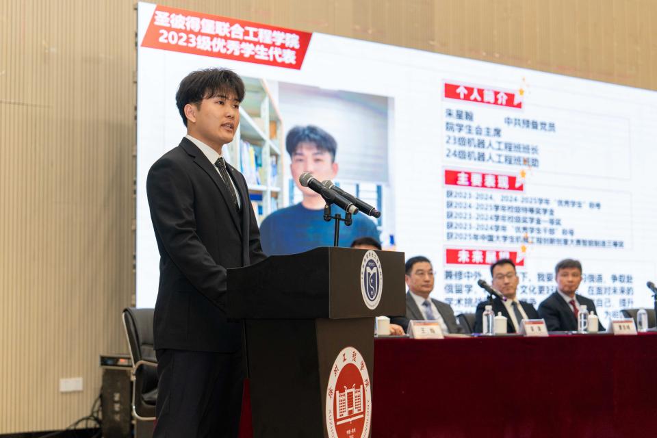 校党委常委、副校长谭文轶在致辞中强调,学院始终坚持党的全面领导,紧紧围绕服务“一带一路”建设、培养新时代国际化工程人才的核心使命,推动党建工作与教育教学工作同向同行。办学两年来,学院构建了“课程—教材—师资”三位一体的质量保障体系,创新实施“1+1+1+1”学生成长服务机制,将党建优势转化为推动学院内涵式发展的强大动力,着力打造淮海经济区对俄教育合作的示范平台。