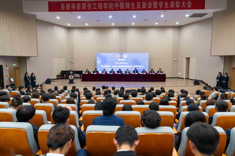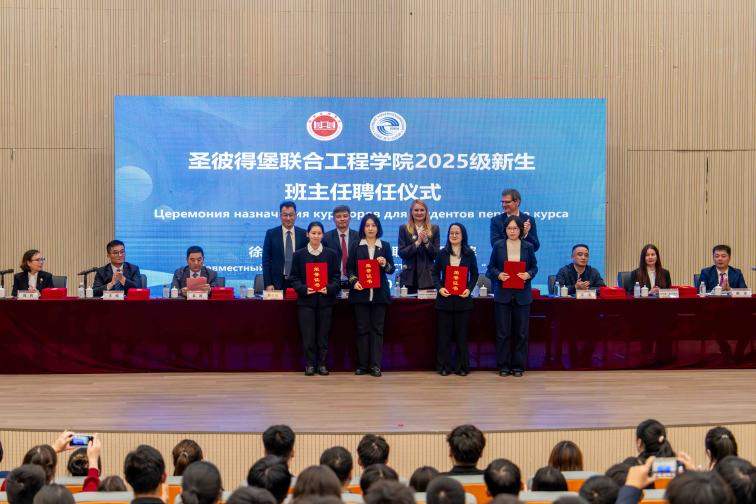 2025年10月17日,徐州工程学院圣彼得堡联合工程学院在东校区敬贤楼音乐厅举行中俄师生见面会暨学生表彰大会。本次活动以“党建+国际化”为特色,将思想引领深度融入人才培养和国际合作全过程,为2025级新生开启大学生涯新篇章奠定了坚实基础。大会开始前,一场由中俄师生共同策划、联袂演绎的暖场活动率先拉开帷幕,用多元文化交融的精彩表演点燃现场氛围。