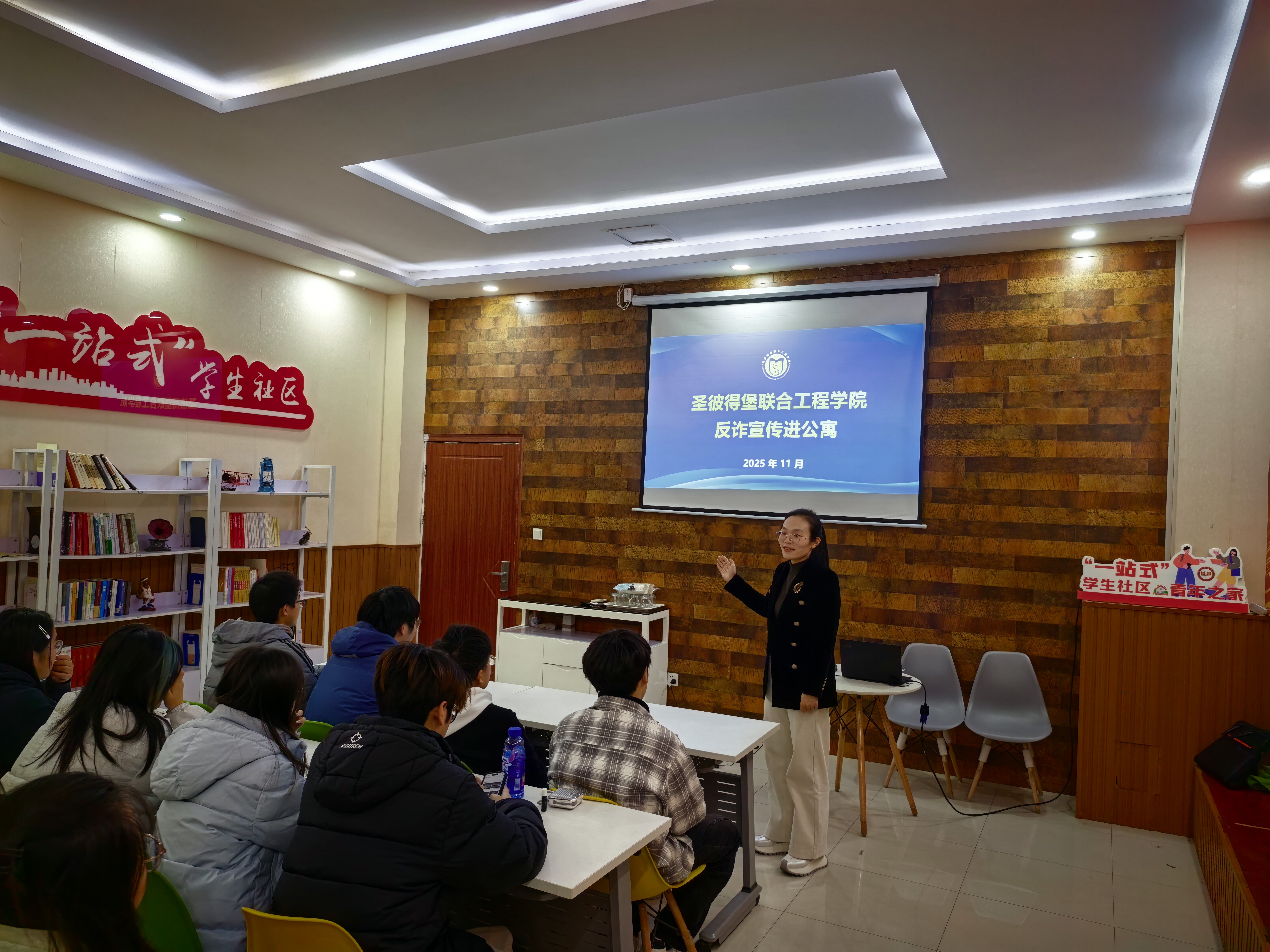 为进一步提升学生的反诈防骗意识和自我保护能力,有效遏制校园电信网络诈骗案件的发生,切实保障学生的财产安全和合法权益,11月19日,圣彼得堡联合工程学院组织全体宿舍长在中心校区学生公寓1号楼社团活动室开展反诈宣传进公寓主题宣讲活动。