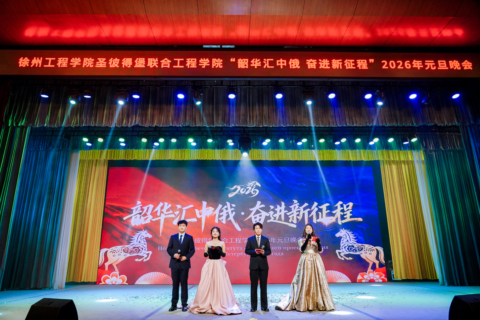 欢声笑语辞旧岁,中俄同庆迎新年。12月16日,圣彼得堡联合工程学院韶华汇中俄,奋进新征程——2026年元旦晚会温情开演,全院师生欢聚一堂,在歌舞、小品与互动中定格岁末的温暖,共启新年新程。