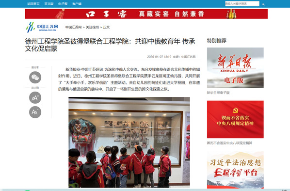 作为中俄合作办学机构,徐州工程学院圣彼得堡联合工程学院始终以推动中俄教育文化交流为己任。此次活动立足“中俄教育年” 时代背景,不仅搭建起校幼协同育人、文明互鉴的坚实桥梁,更以沉浸式体验拓宽幼儿国际视野,让孩子们在快乐中感知中国非遗底蕴、领略俄罗斯文化魅力;同时助力大学生在实践中提升综合能力,实现双向成长、双向收获。