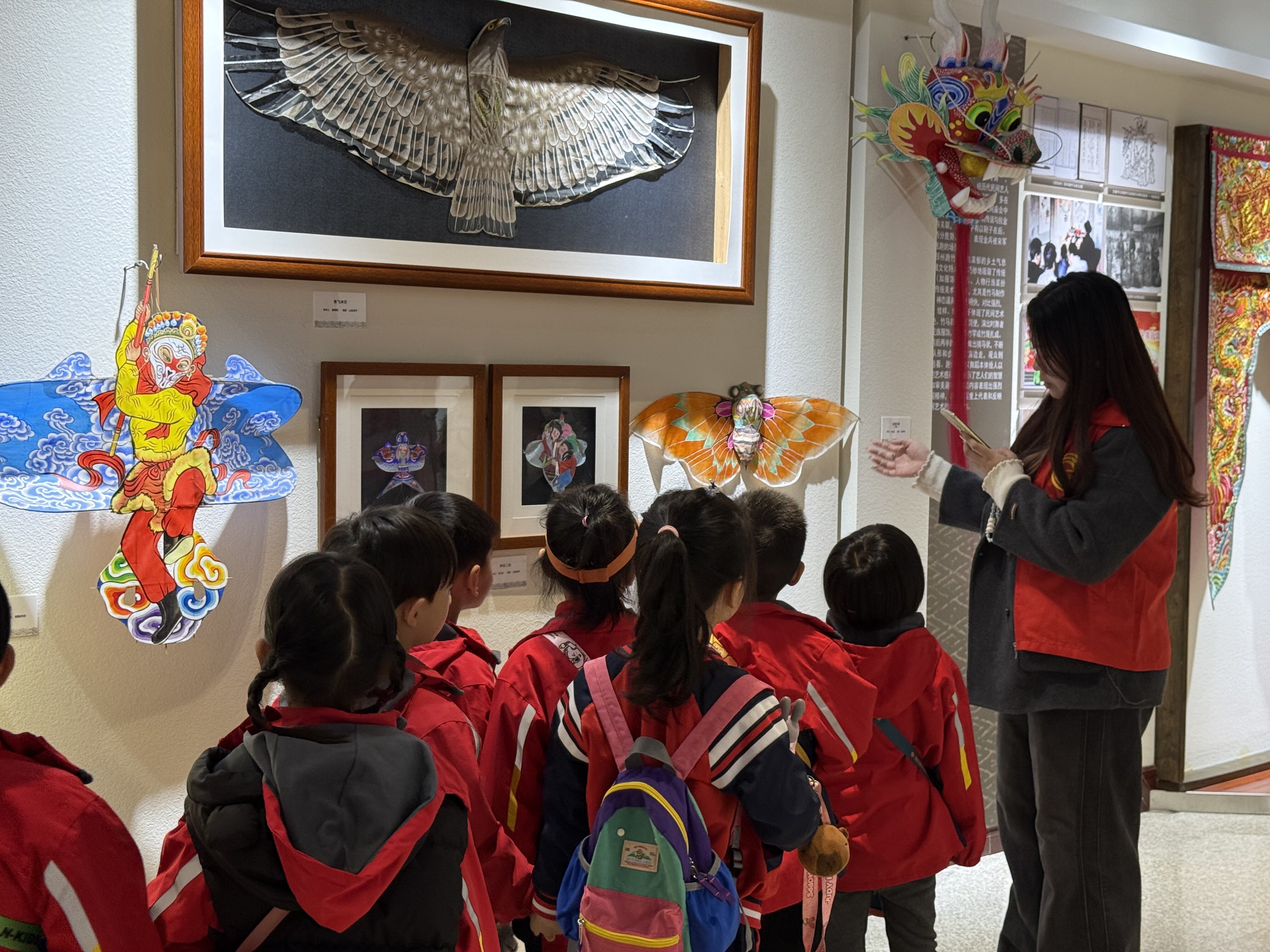 活动伊始,在大学生志愿者的悉心引导下,萌娃们秩序井然地开启校园探索之旅。大家漫步葱郁校园,依次走进逸夫图书馆,参观博库书城、沙盘模型区、阅览室及非物质文化遗产研究中心。在非遗体验区,徐州剪纸、香包等传统工艺展品韵味十足,志愿者化身“非遗讲解员”,用孩童易懂的语言讲解历史渊源与文化内涵,手把手指导识别剪纸吉祥纹样、触摸香包刺绣肌理,并设置简易实践环节,让孩子们亲手体验剪纸与刺绣。沉浸式的非遗探索,让中华优秀传统文化的种子悄然植入童心,也为中俄文化元素碰撞融合搭建起传统载体。