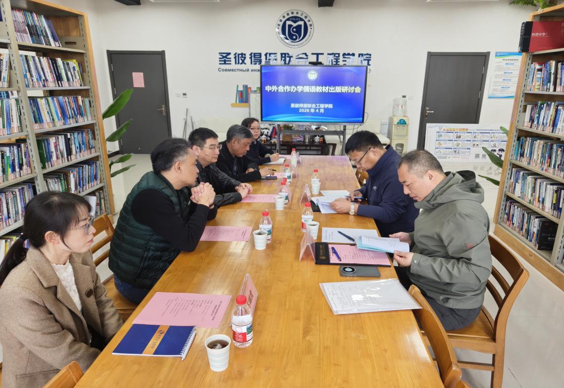为进一步推进中俄合作办学高质量发展,规范工科中俄双语教材建设,提升国际化人才培养质量,2026年4月14日上午,徐州工程学院圣彼得堡联合工程学院在敬中楼414图书室召开俄语教材出版研讨会。黑龙江大学出版社社长张永超、社长助理兼营销部主任周志国,徐州工程学院电气与控制学院院长王树臣、机电工程学院副院长石端虎、圣彼得堡联合工程学院直属党支部书记吴涛、副院长郭莉、副院长王尧和相关教师等出席会议。